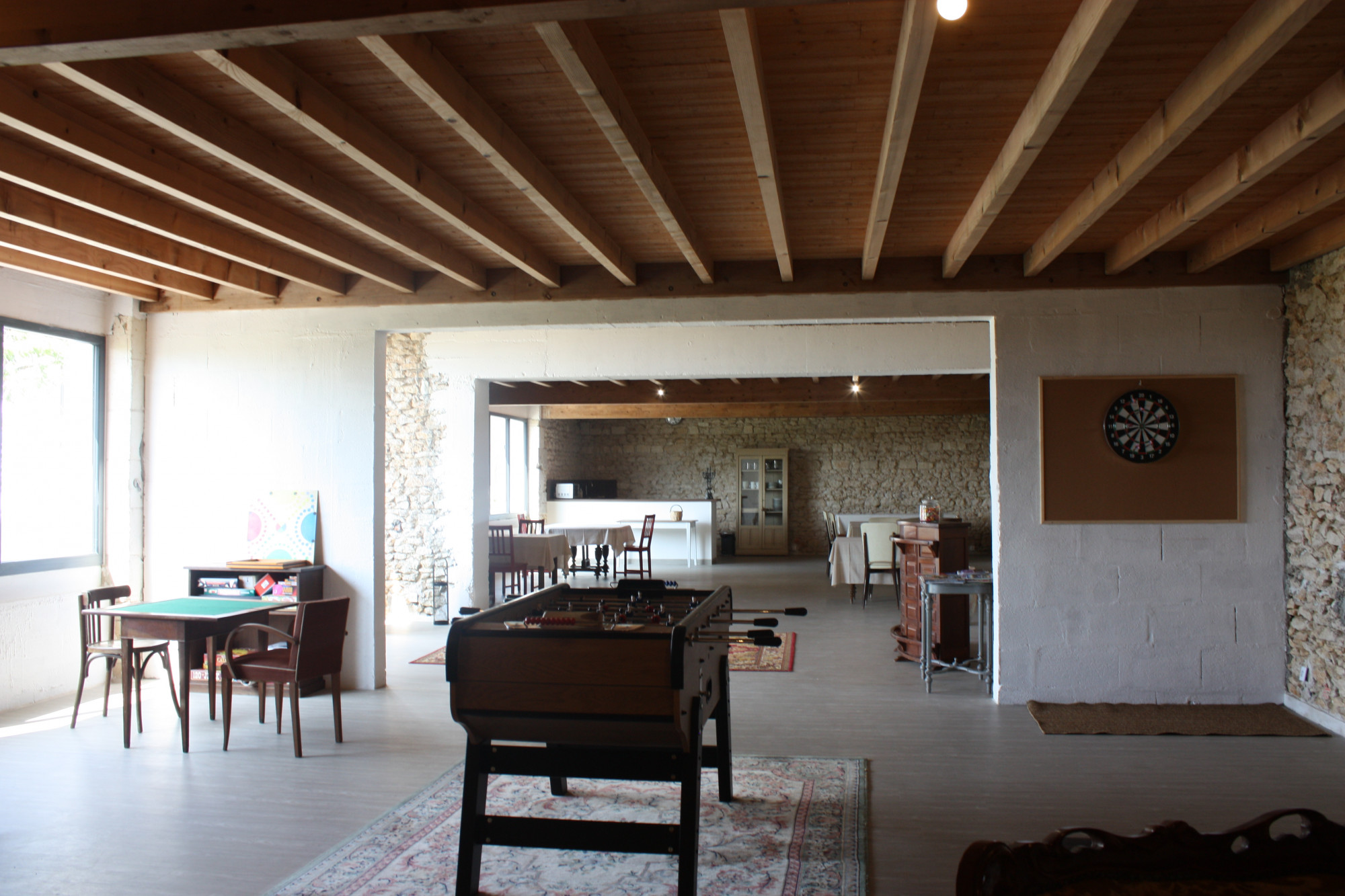 Un espace salon est à votre disposition en journée et en soirée avec des jeux de société, un espace pour les plus petits, un baby-foot, une bibliothèque…